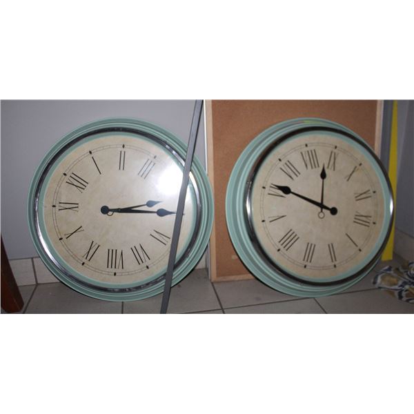 TWO TEAL ANTIQUE STYLE/DECORATIVE WALL CLOCKS