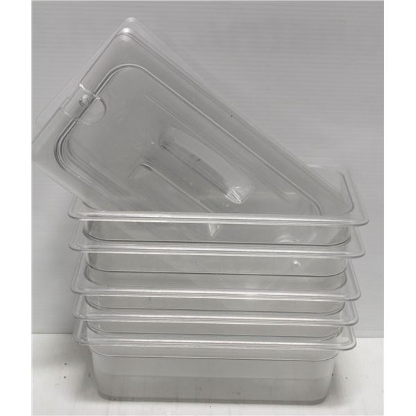 LOT OF 5 CAMBRO 1/2 SIZE POLY CARB FOOD PANS W/6002 - LOT OF 5 CAMBRO 1/2 SIZE POLY CARB FOOD PANS W/