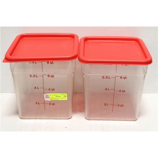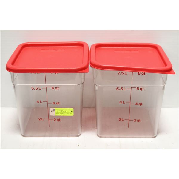 2 CAMBRO 8QT POLY CARB DRY INGREDIENT BINS6008 - 2 CAMBRO 8QT POLY CARB DRY INGREDIENT BINS