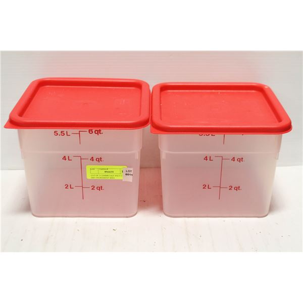 LOT OF 2 CAMBRO 6QT POLY CARB DRY INGREDIENT BINS6011 - LOT OF 2 CAMBRO 6QT POLY CARB DRY INGREDIENT BINS