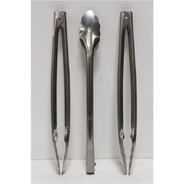 LOT OF 3 NEW SETS OF 11.75" STAINLESS STEEL TONGS