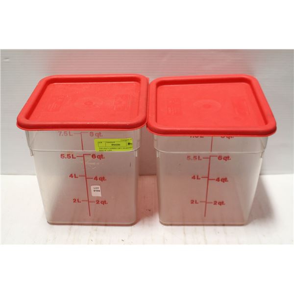 TWO 8QT CAMBRO DRY INGREDIENT BINS W/ LIDS