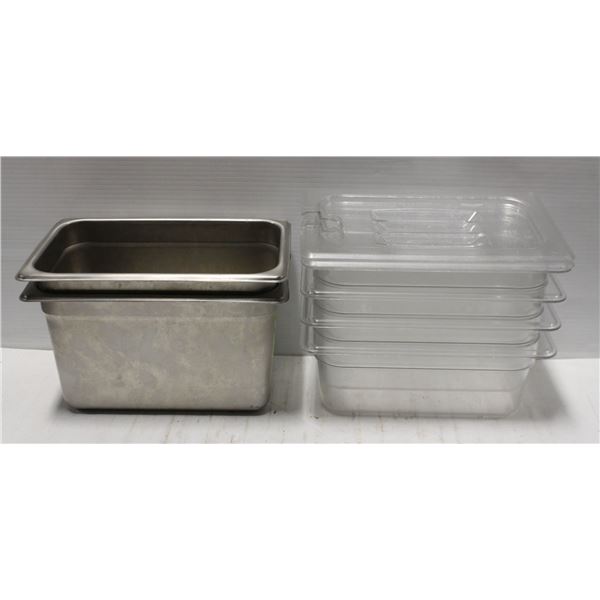3 STAINLESS STEEL 1/2 SIZE FOOD PANS W/ 1 LID