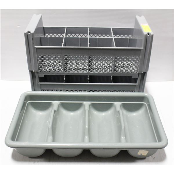 2 CAMBRO CUTLERY TRAYS W/ 4 COMPARTMENT BUS BOX