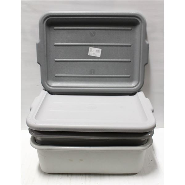 LOT OF 3 POLY BUS BINS W/ 2 LIDS