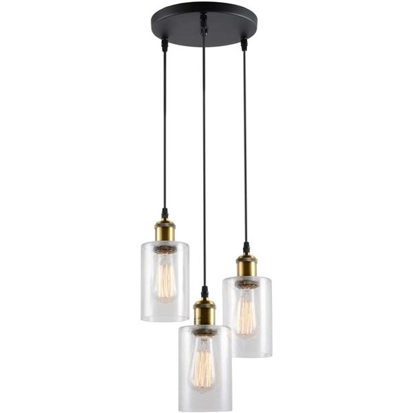 NEW 3 LIGHT GLASS PENDANT DROP DOWN LIGHT WITH