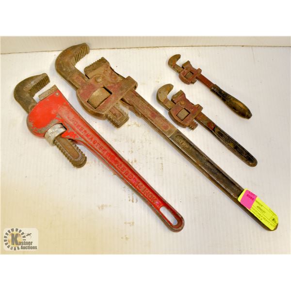 LOT OF 4 ADJUSTABLE HEAVY DUTY WRENCHES VINTAGE &