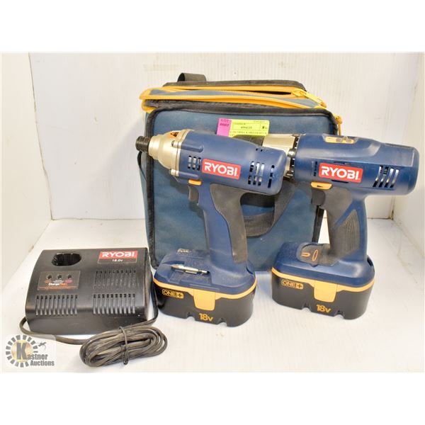 RYOBI 18V DRILL & DRIVER SET W/ BATTERY AND
