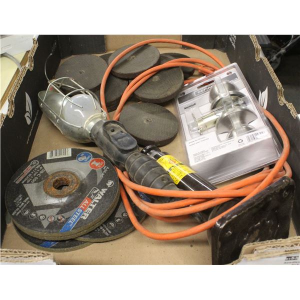 RACK OF VARIOUS TOOLS AND ACCESSORIES