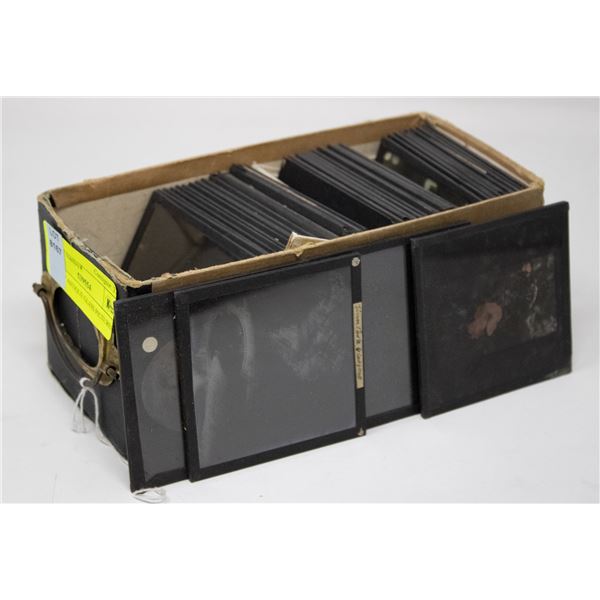 BOX OF ANTIQUE GLASS PICTURES SLIDES
