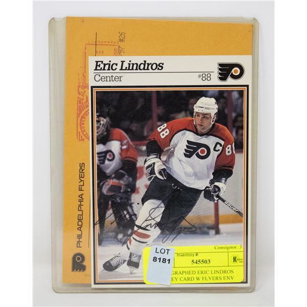 AUTOGRAPHED ERIC LINDROS HOCKEY CARD W FLYERS ENV