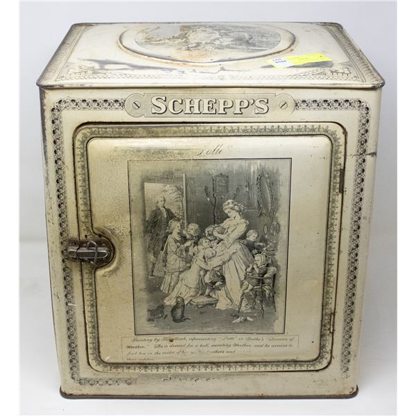 LARGE ANTIQUE SCHEPPS TIN CAKE SAFE ORNATE