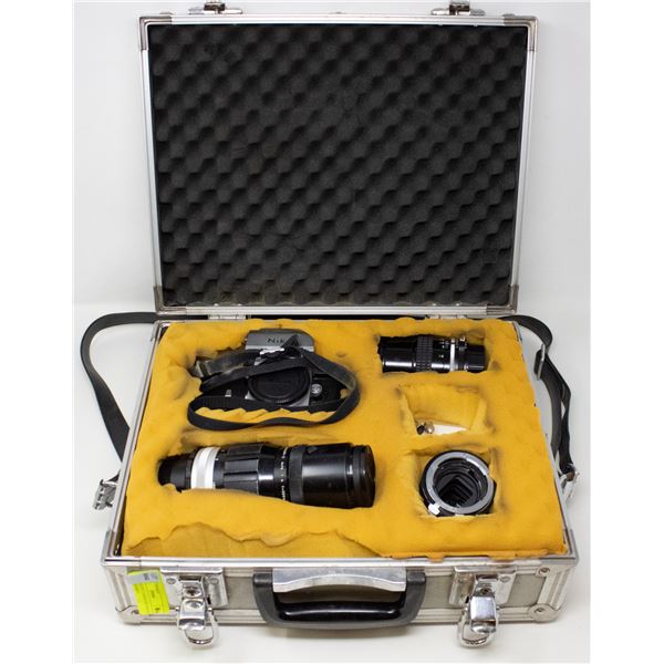 35MM NIKON F CAMERA KIT IN CASE W ACCESSORIES