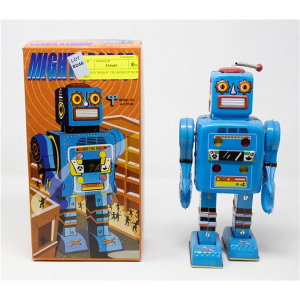 MIGHTY ROBOT TIN WIND UP WITH BOX