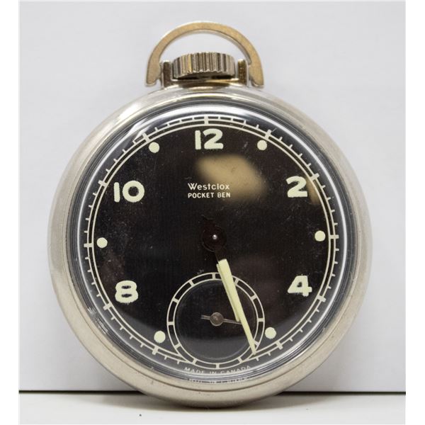 VINTAGE BLACK DIAL WESTCLOX POCKET WATCH