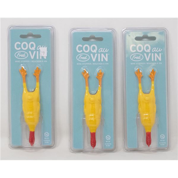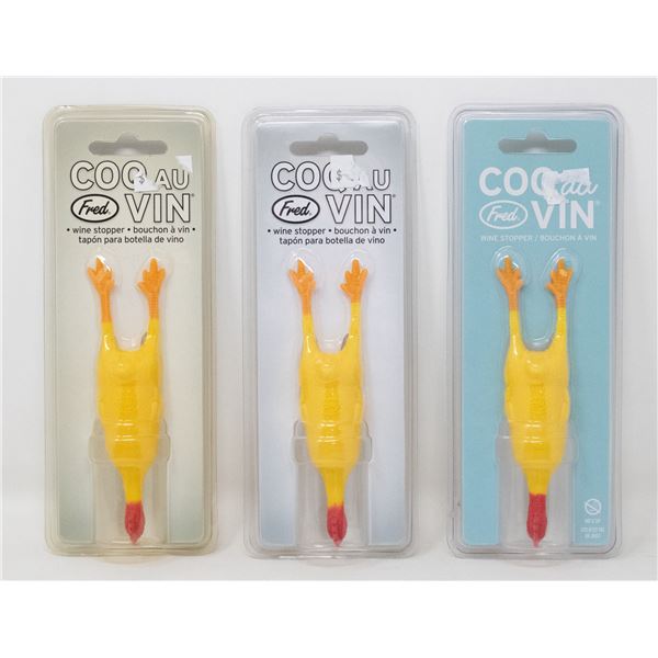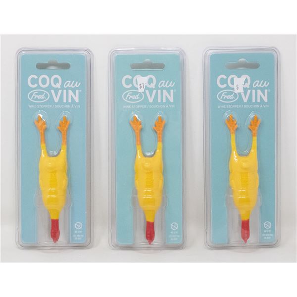 LOT OF 3 NEW CHICKEN WINE BOTTLE STOPPERS