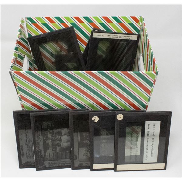 BOX OF ANTIQUE GLASS PICTURES SLIDES