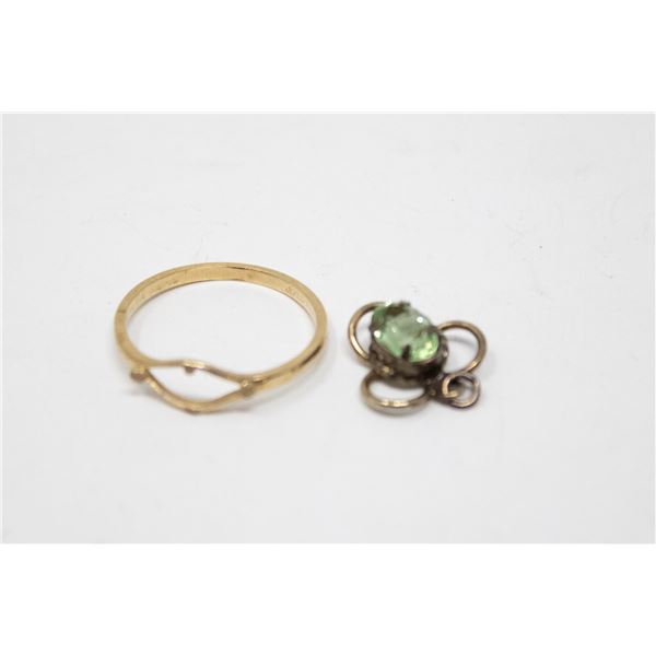 10K GOLD RING W GREEN TOURMALINE PENDANT