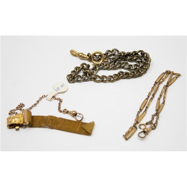 LOT OF 3 ANTIQUE POCKET WATCH CHAINS