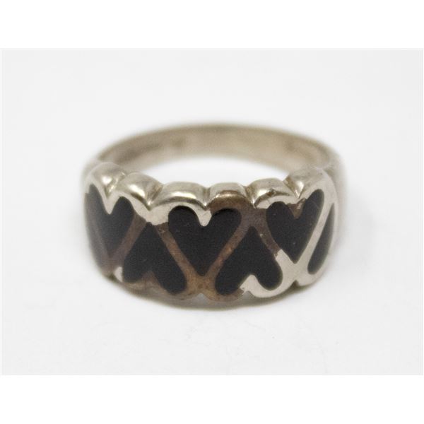 SM SILVER RING WITH BLACK HEARTS MADAME RAC