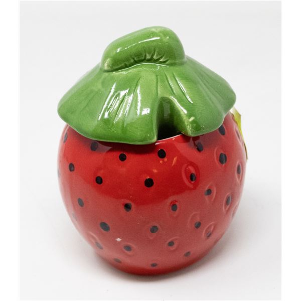 CERAMIC STRAWBERRY SUGAR BOWL W LID