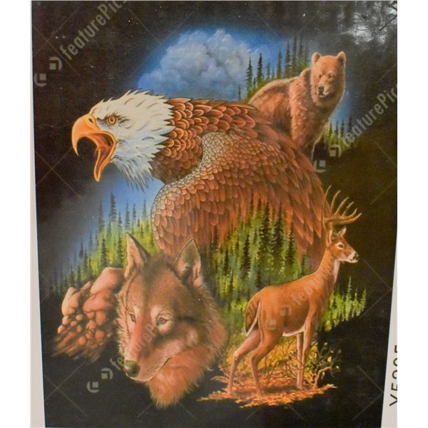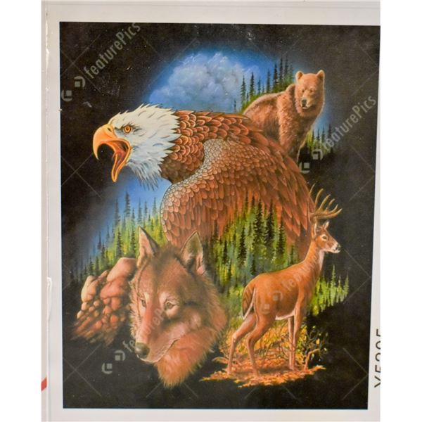 CANVAS, WILDLIFE SCENE WITH EAGLE/BEAR/WOLF/DEER , PAINT BRUSHES AND ACRYLIC PAINT INCLUDED, 20 X 16", ALL PARTS AND PIECES SEALED, ORIGINAL...