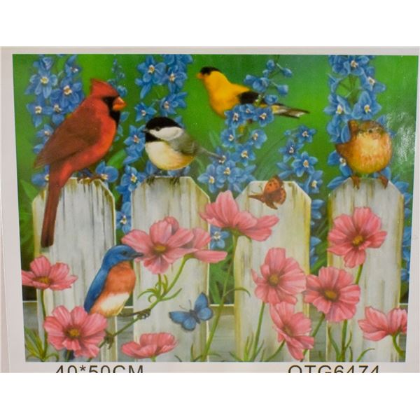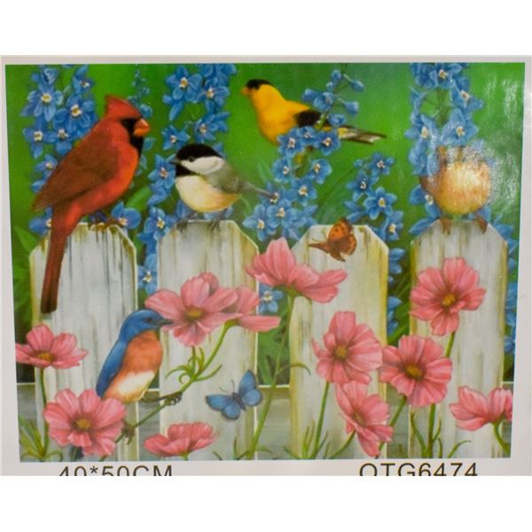 CANVAS, BIRDS ON FENCE, PAINT BRUSHES AND ACRYLIC PAINT INCLUDED, 20 X 16", ALL PARTS AND PIECES SEALED, ORIGINAL BOX, AMZ SES