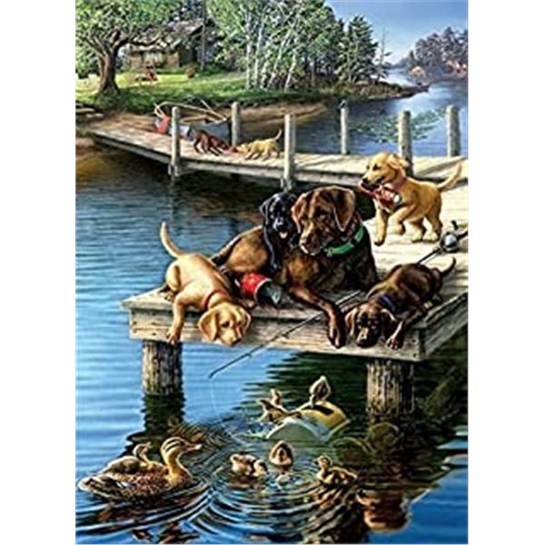 NEW DIY PAINT BY NUMBERS KIT DOCK PUPPYS AND DUCKS