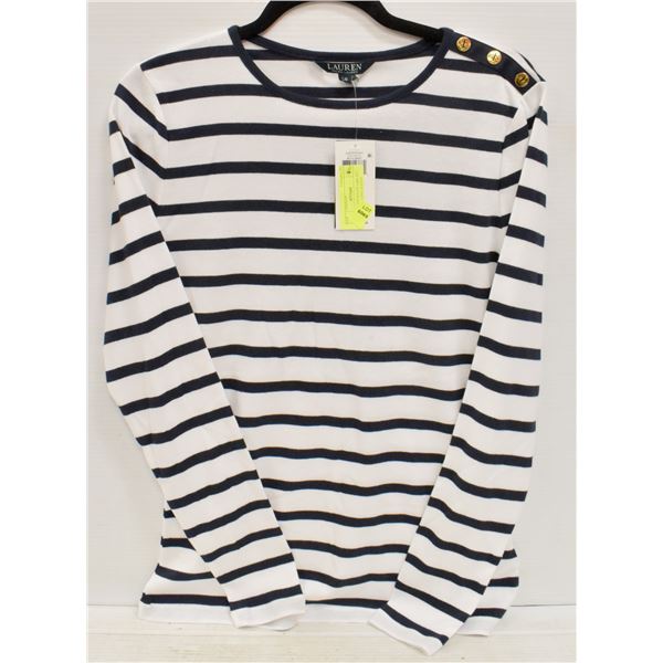NEW WOMANS RALPH LARUEN NAVY/WHITE LONG SLEEVE