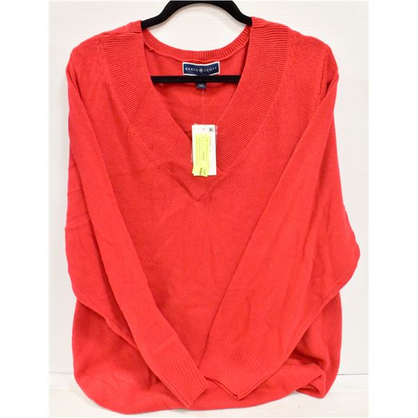 NEW KAREN SCOTT PLUS WOMENS 2X RED V-NECK SWEATER