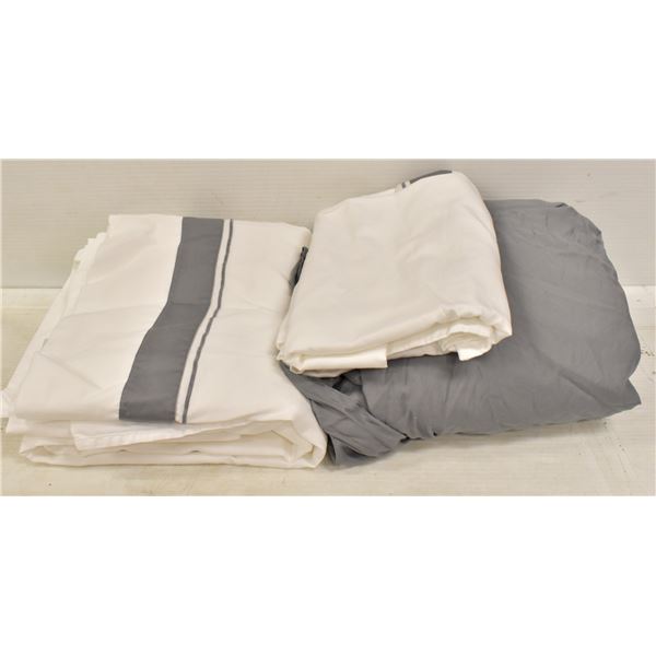 WHITE/GREY PATTERN, SHAMS 20 X 40", FLAT 106 X 126", FITTED 79 X 80" WITH 18" POCKET, 100% COTTON, HBC SES,