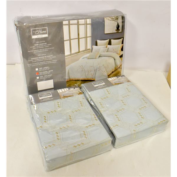 SET INCLUDEDS, 1 COMFORTER (90X90") & 2 SHAMS (21X29"). SHELL 100% COTTON, FILL 100% POLYESTER. MSRP $140. HBC SES