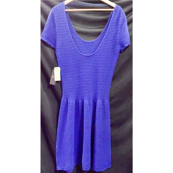 NEW DEX BLUE MEDIUM SHORT SLEEVE DRESS, OPEN BACK