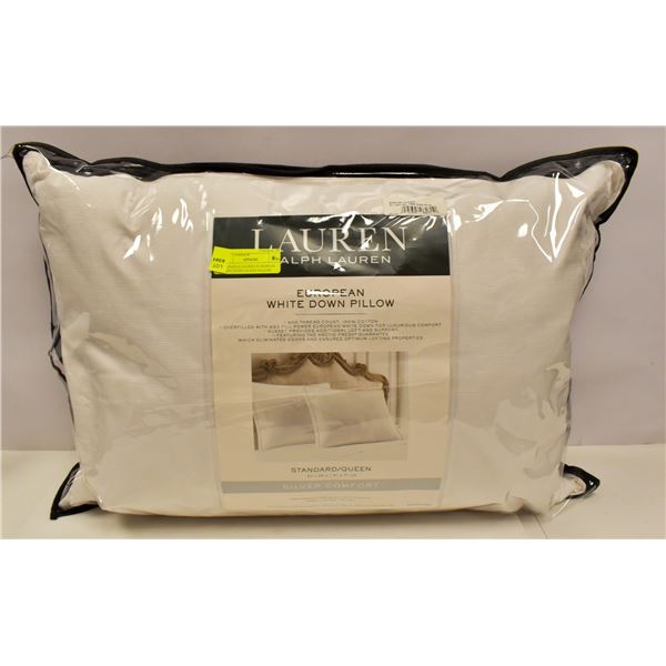 NEW RAPLH LAUREN EUROPEAN WHITE DOWN QUEEN PILLOW