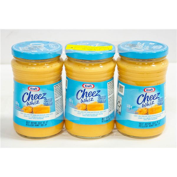 LOT OF 3 KRAFT CHEEZ WHIZ LIGHT,450G,BB SEPT 7/227225 - LOT OF 3 KRAFT CHEEZ WHIZ LIGHT,450G,BB SEPT 7/22