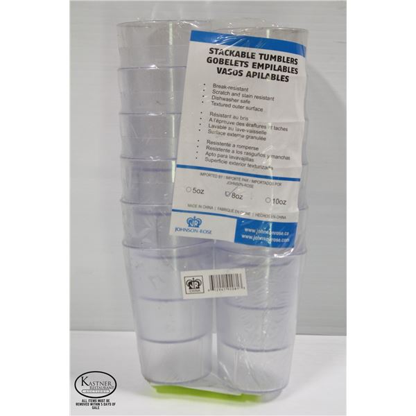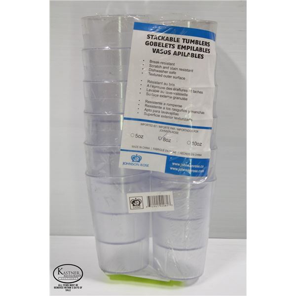 OPEN PACK OF SEVEN 8 OZ TUMBLERS, DOZEN NEW 12 OZ TUMBLERS **ALL ITEMS MUST BE REMOVED BY 5PM MONDAY, SEPTEMBER 12TH, 2022. ALL REMAINING ITEMS WILL B