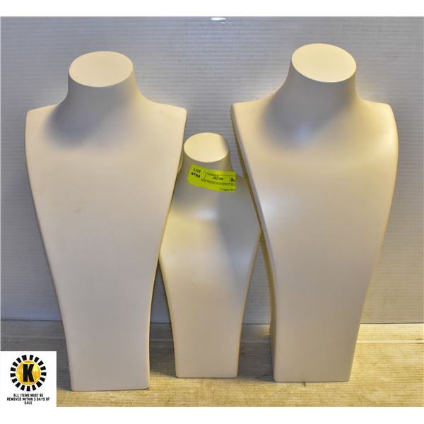 2 LARGE AND 1 SMALL NECKLACE DISPLAY BUSTS