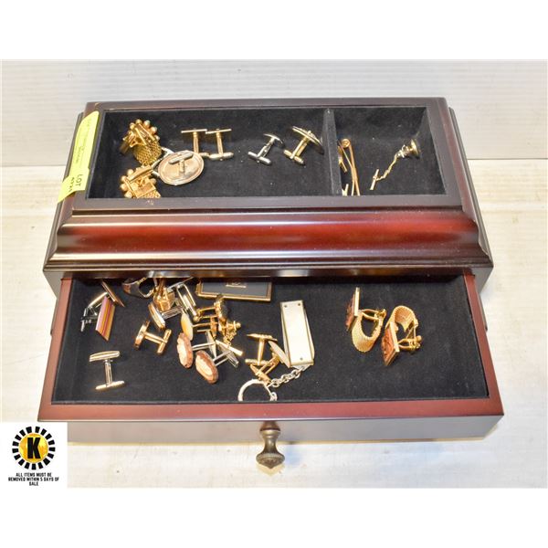 JEWELRY BOX WITH VARIOUS CUFF LINKS AND TIE CLIPS