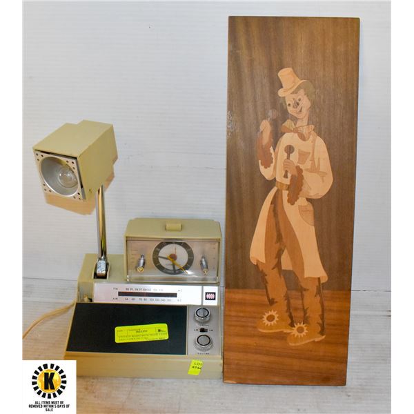 VINTAGE RADIO WITH NIGHT LIGHT AND CLOWN PICTURE