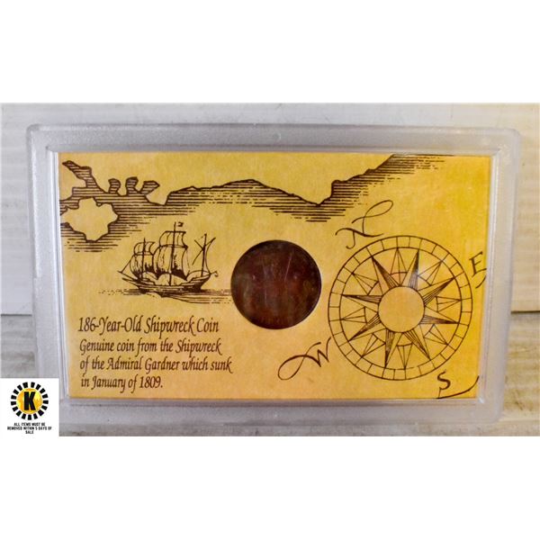 186 YEAR OLD SHIPWRECK GENUINE COIN OF THE ADMIRAL GARDNER WHICH SUNK IN JANUARY 1809