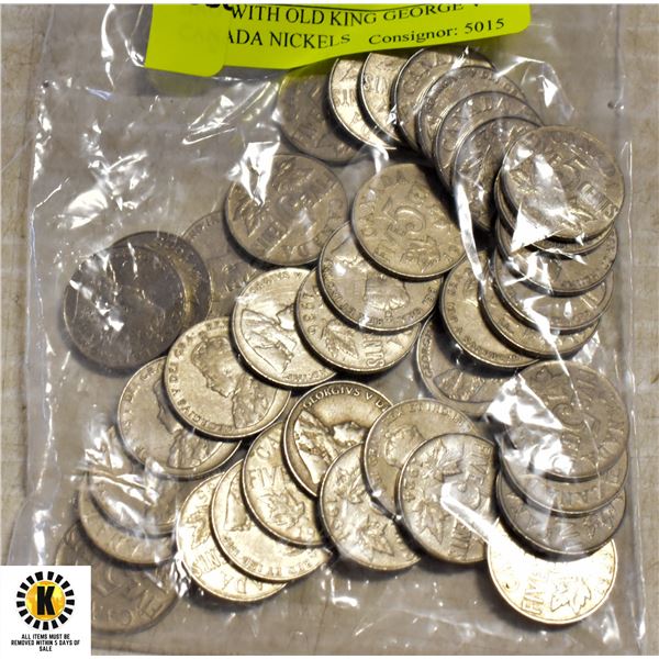 BAG WITH OLD KING GEORGE V CANADA NICKELS