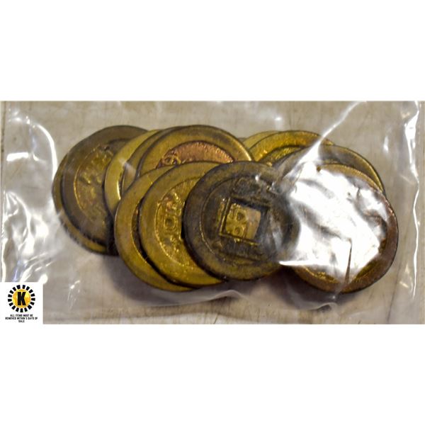 BAG WITH OLD CHINESE CASH COIN ORNAMENT