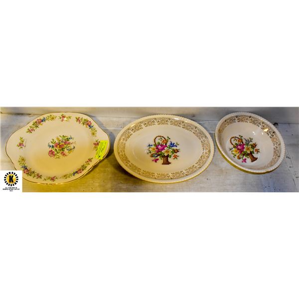 LOT OF 3 SOVEREIGN POTTERY SERVING DISHES 22K GOLD