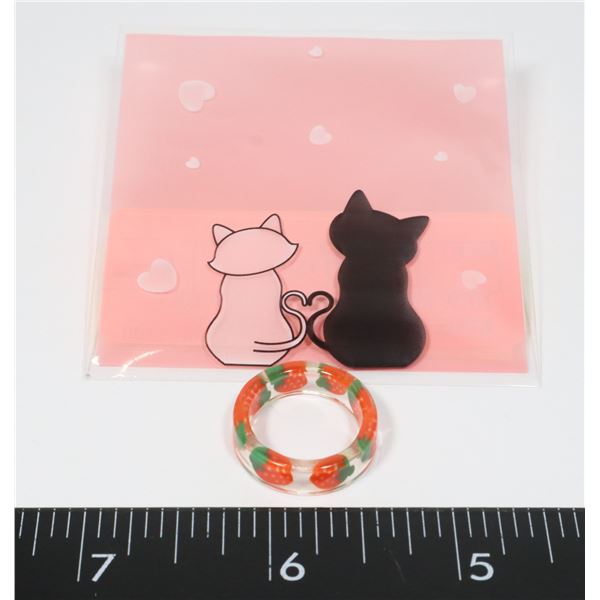 NEW FRUIT PRINT RESIN PINKY RING WHOLE STRAWBERRY