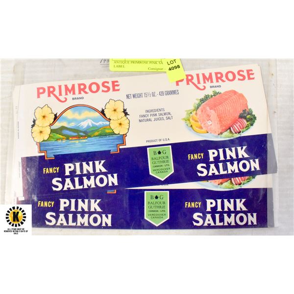 VINTAGE PRIMROSE PINK SALMON LABEL