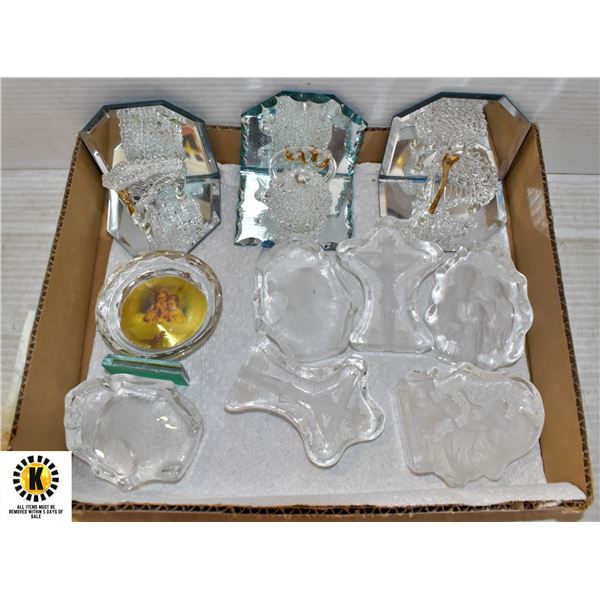 BOX OF CRYSTALS AND HAND BLOWN FIGURINES
