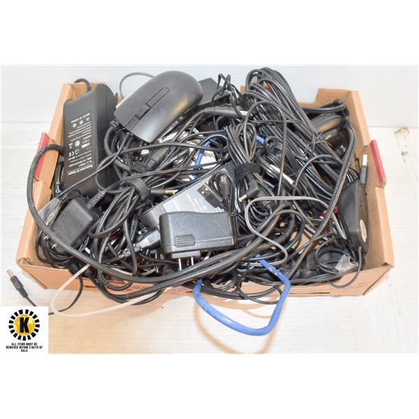 BOX OF CABLE CORDS AND MORE