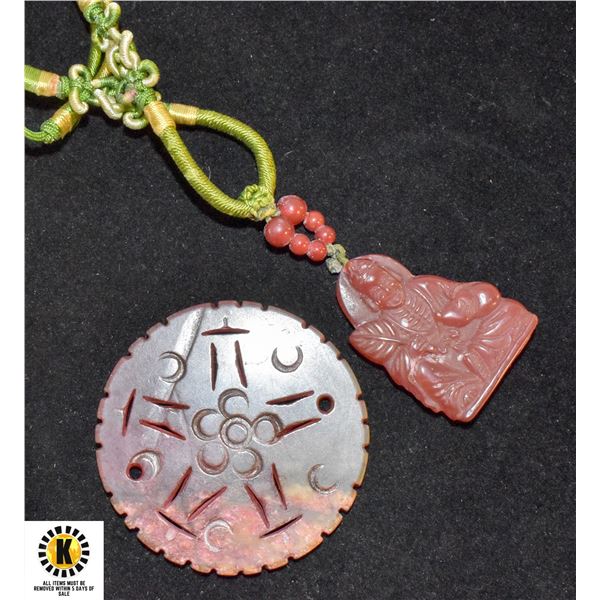 ESTATE CARNELIAN BUDDHA& JADE CARVED LARGE PENDANT