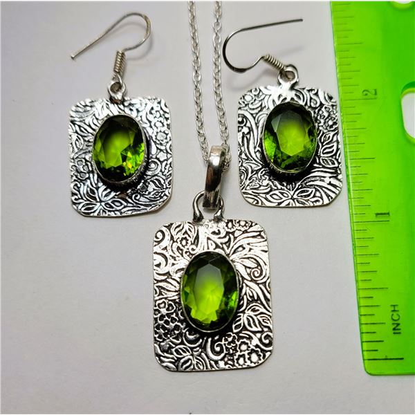 18) OVAL LAB CREATED PERIDOT SET OF JEWELRY,