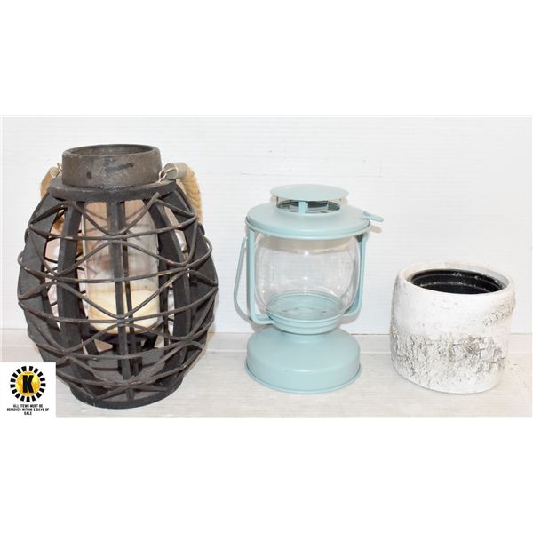 2 OUTDOOR LANTERN/CANDLE HOLDERS, DECOR PLANT POT
